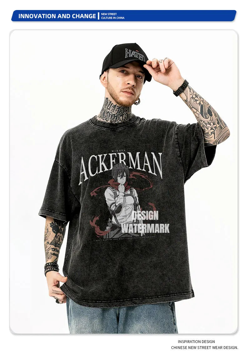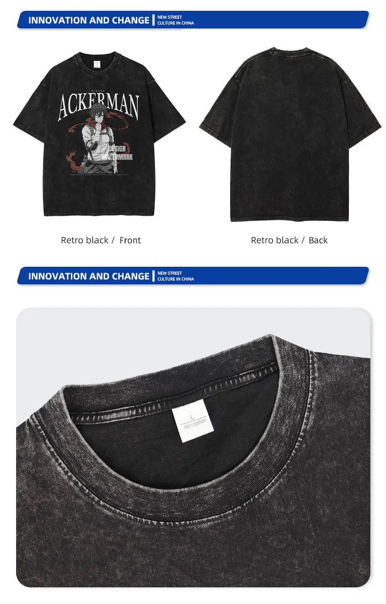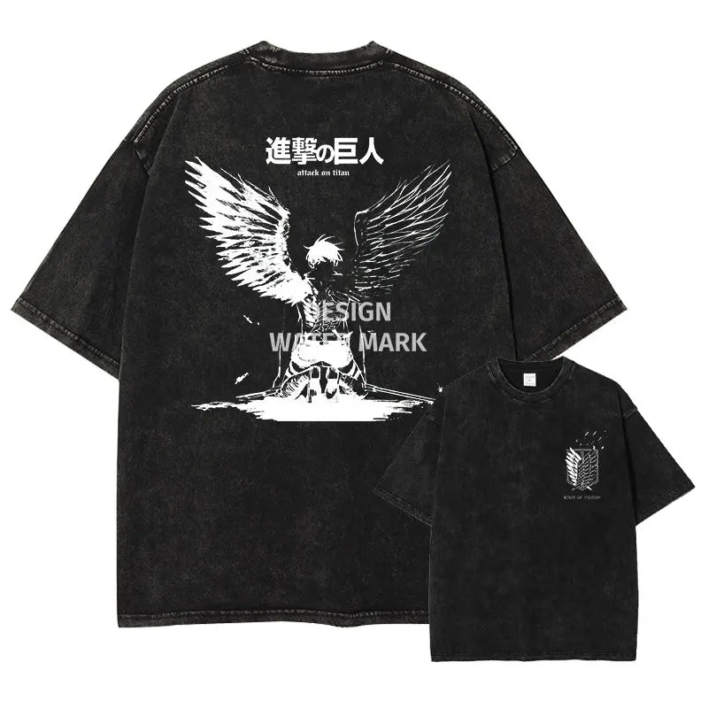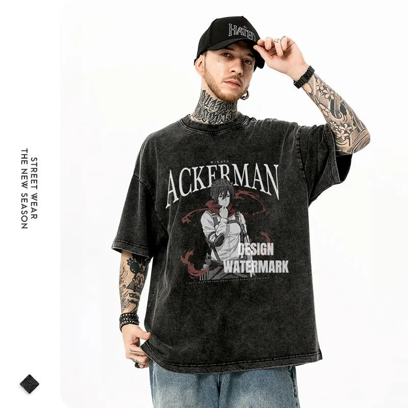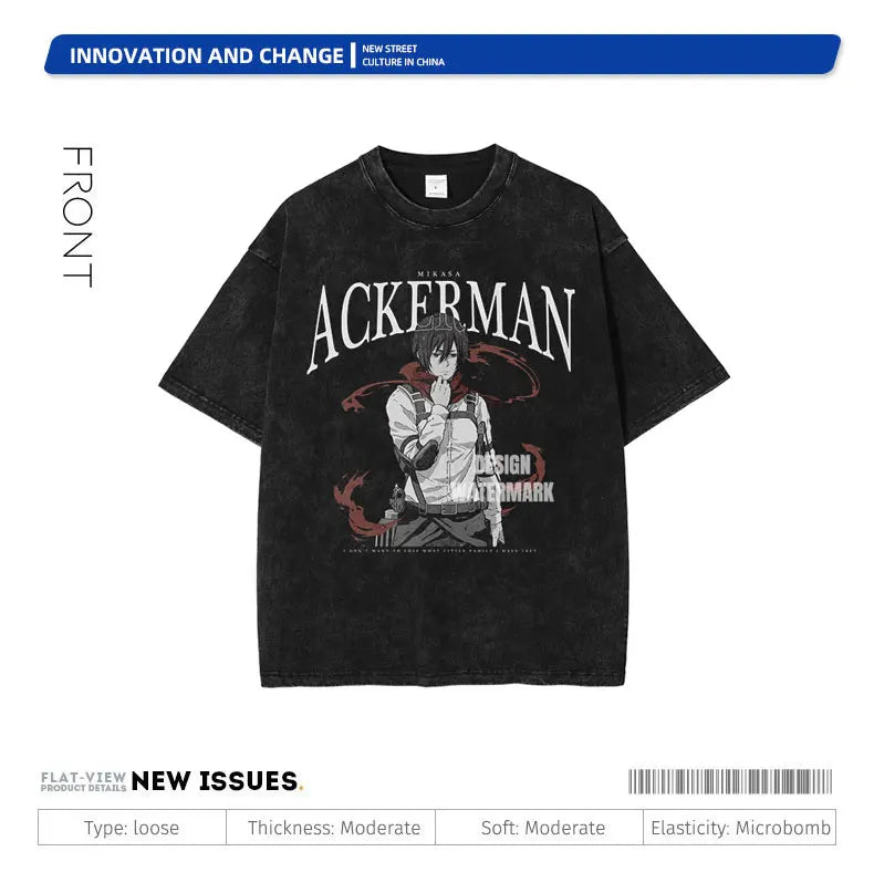 Ackerman Mikasa T Shirts Vintage Washed Anime A-Attack on T-Titan T-shirt Y2K Streetwear Manga Shingeki no Kyojin Tops Tees Man