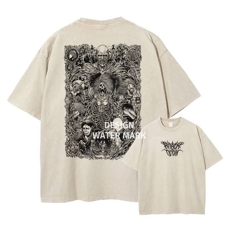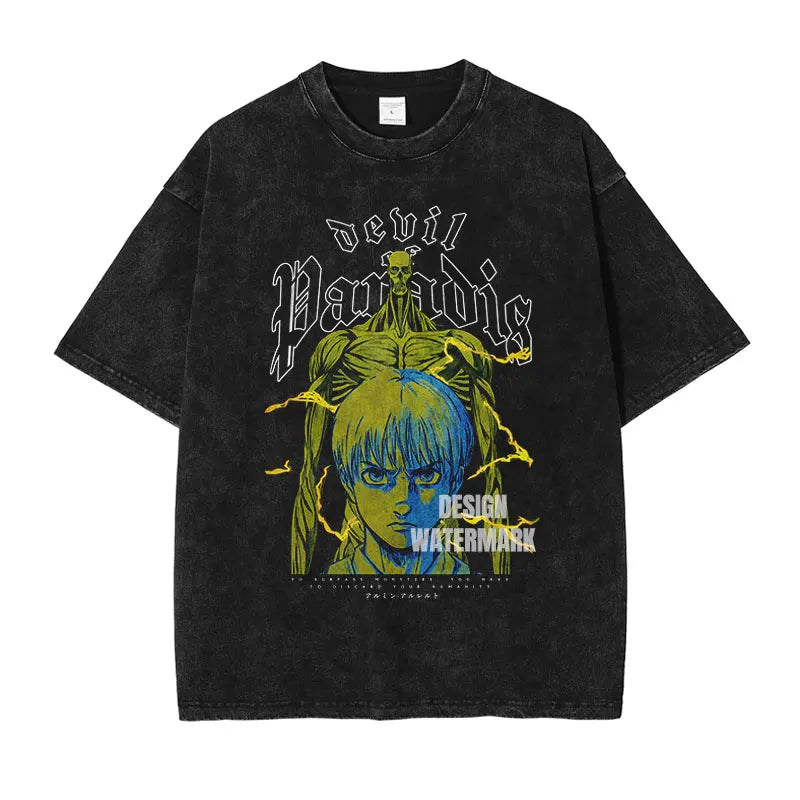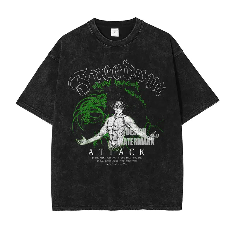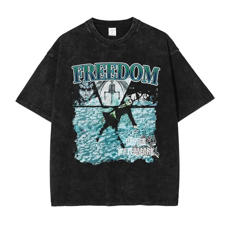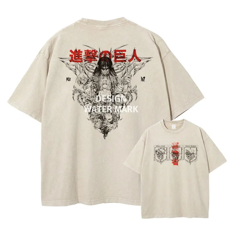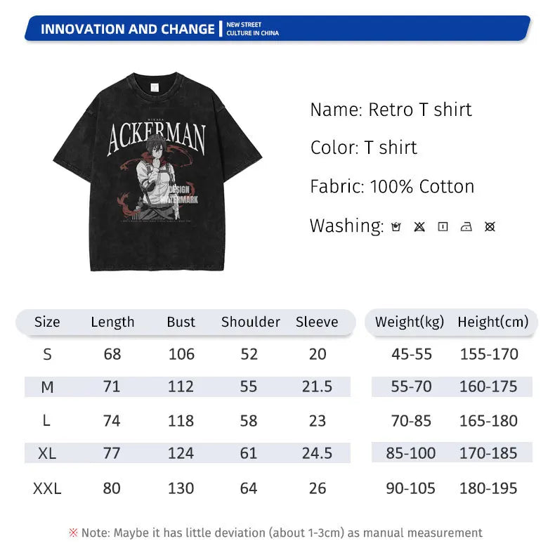 Ackerman Mikasa T Shirts Vintage Washed Anime A-Attack on T-Titan T-shirt Y2K Streetwear Manga Shingeki no Kyojin Tops Tees Man