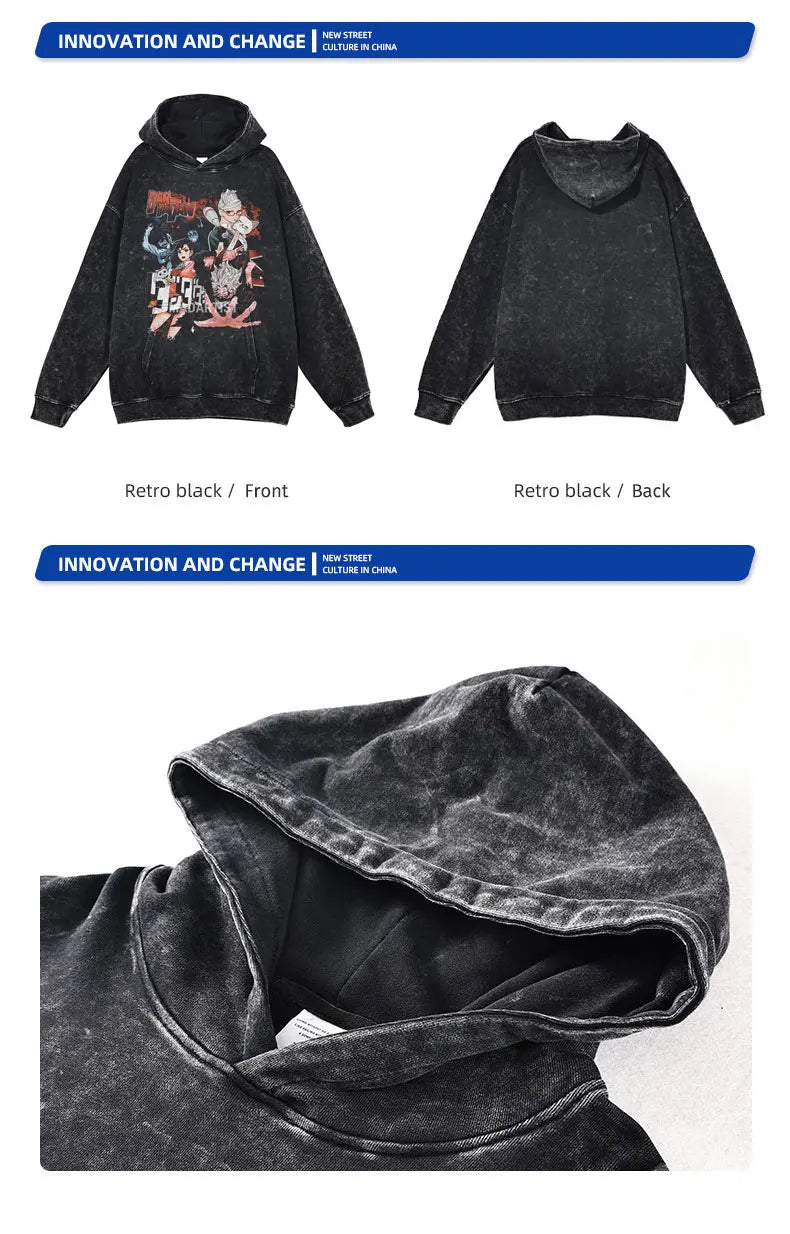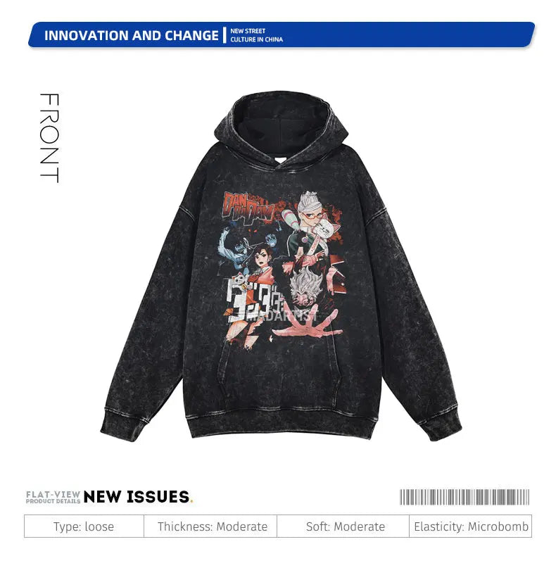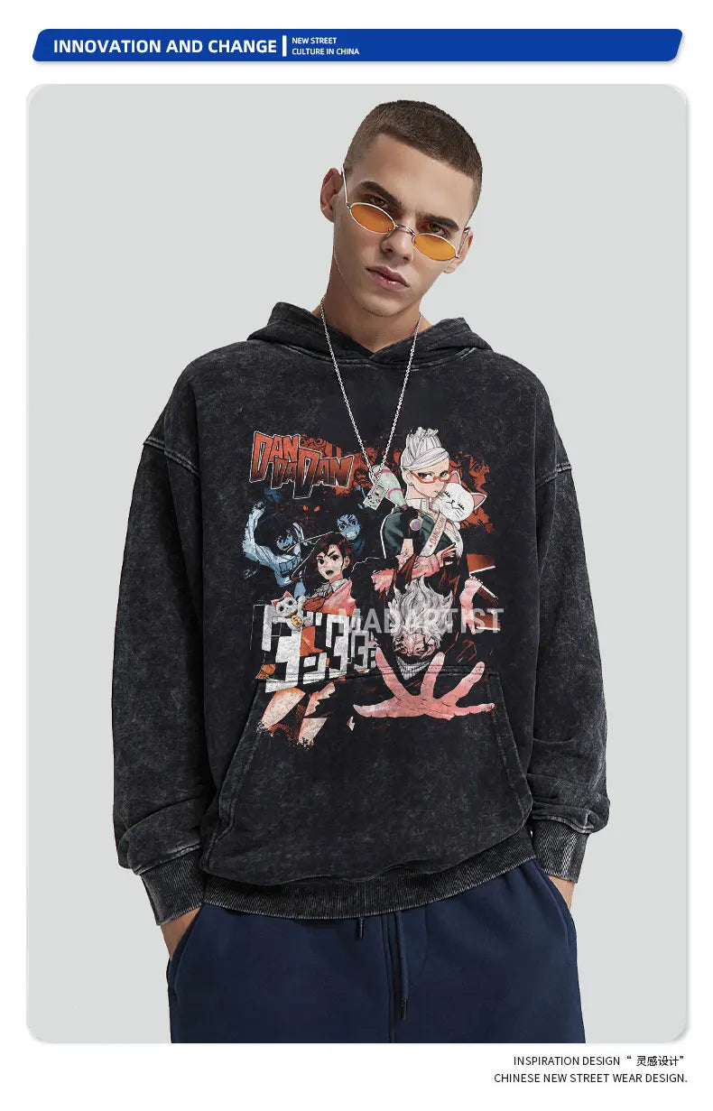 Anime dandadan Hoodies Vintage Washed Dan Da Dan Hooded Sweatshirts Oversize Streetwear Manga Ayase Momo Okarun Hoodie Men Women