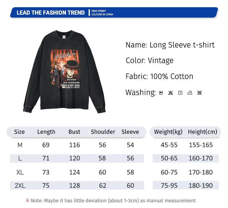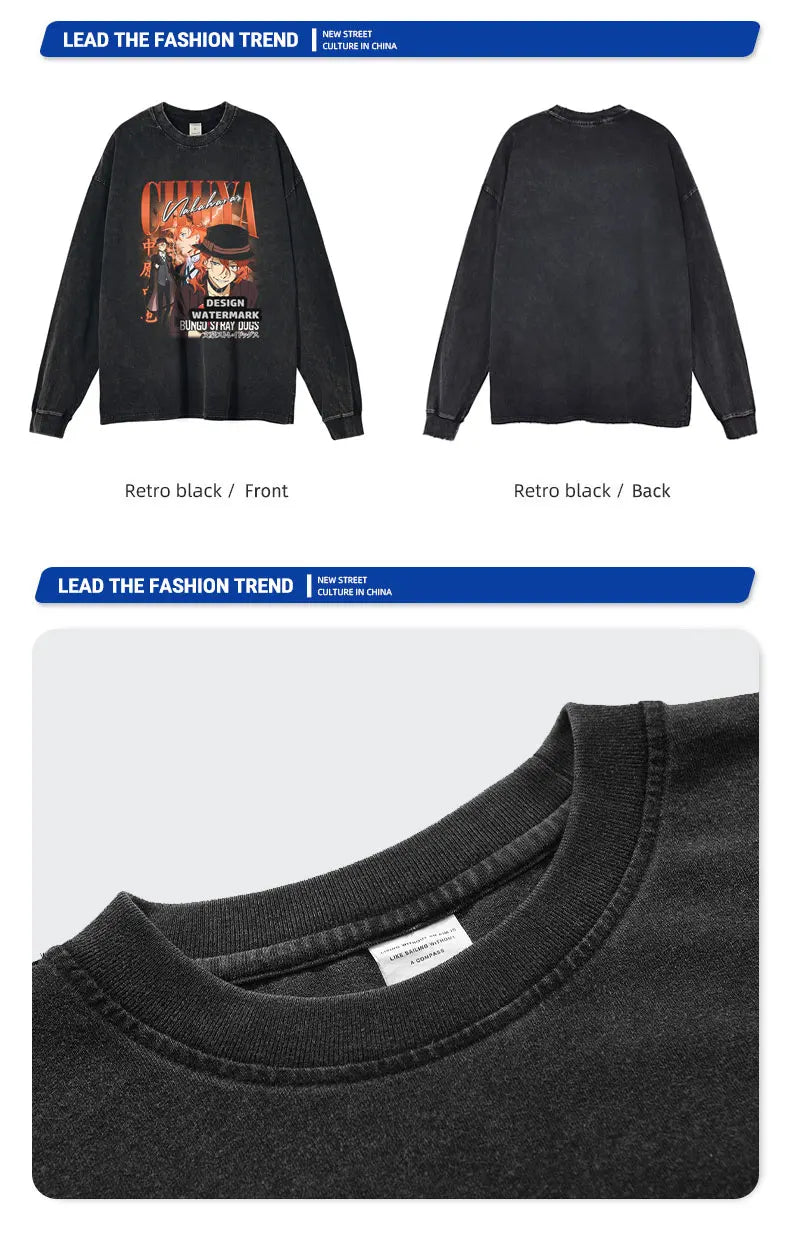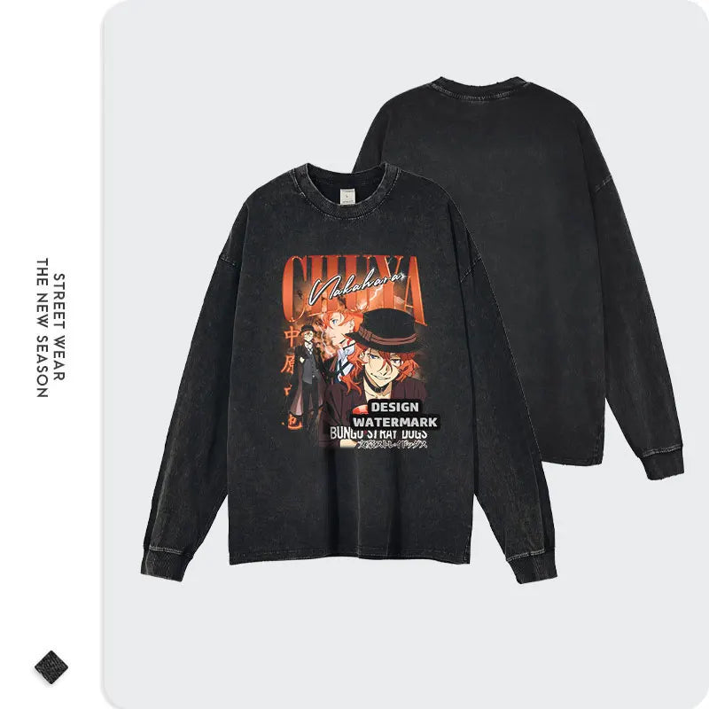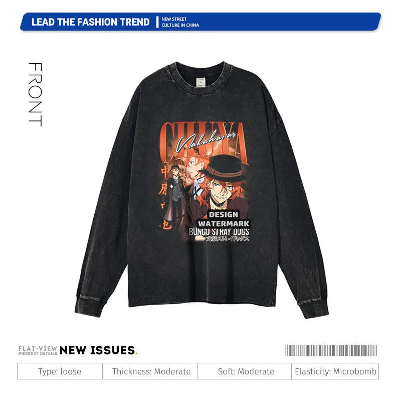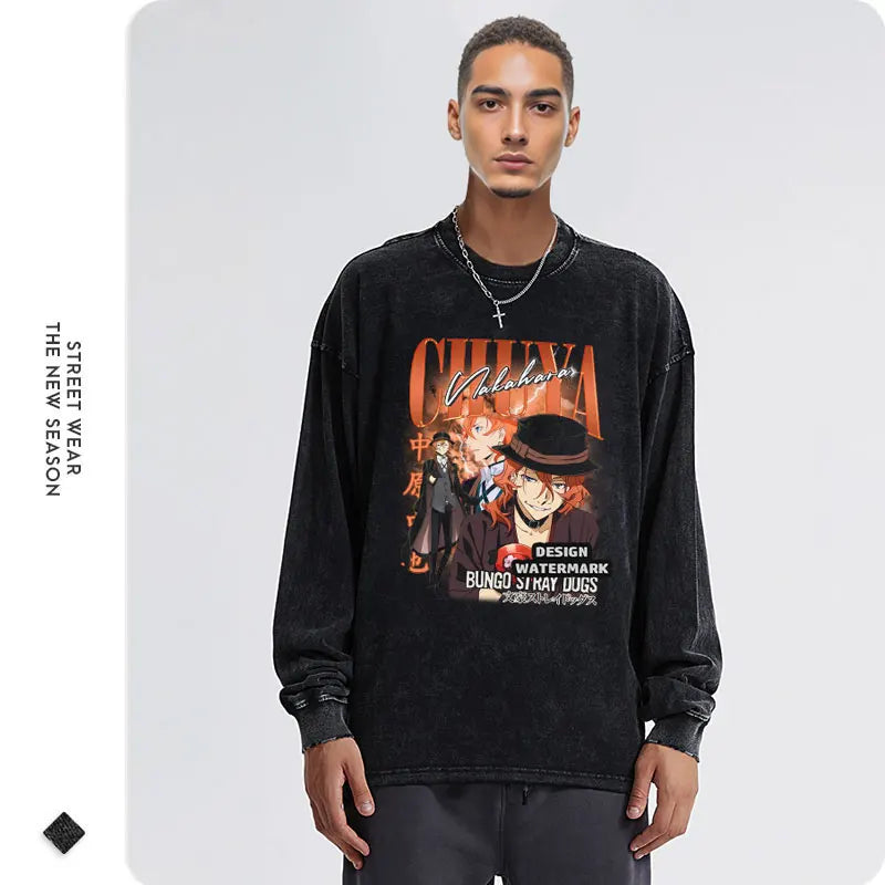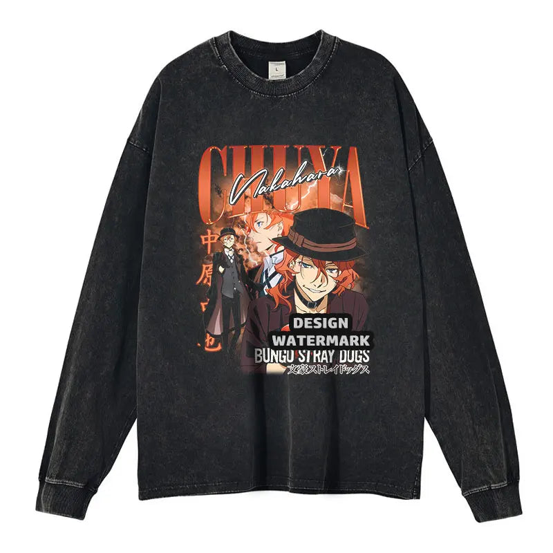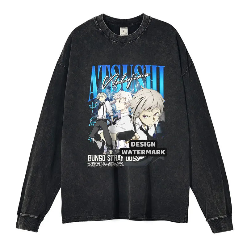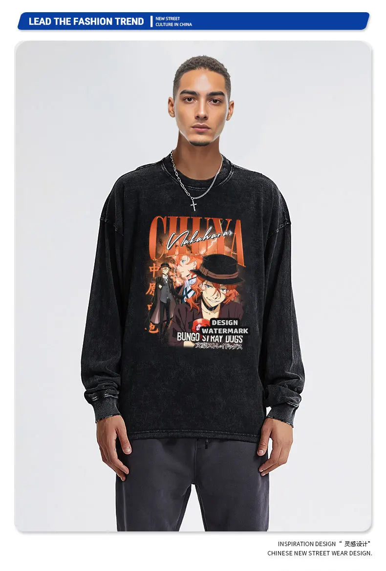 Anime Dazai Osamu Sweater Oversized Bungou Stray Dogs Long Sleeve T Shirts Atsushi Pullover Ryuunosuke Sweatshirts 100% Cotton