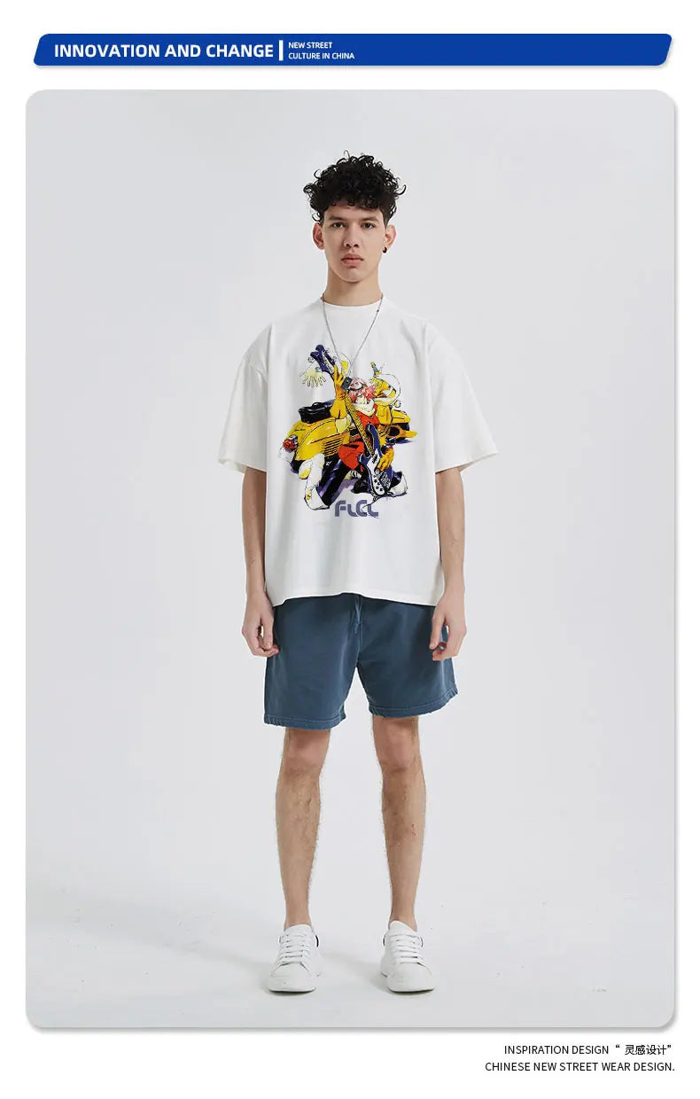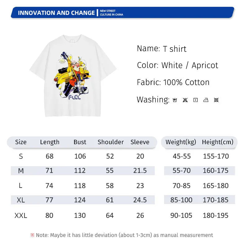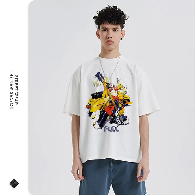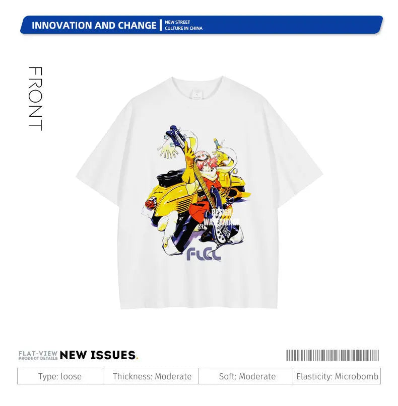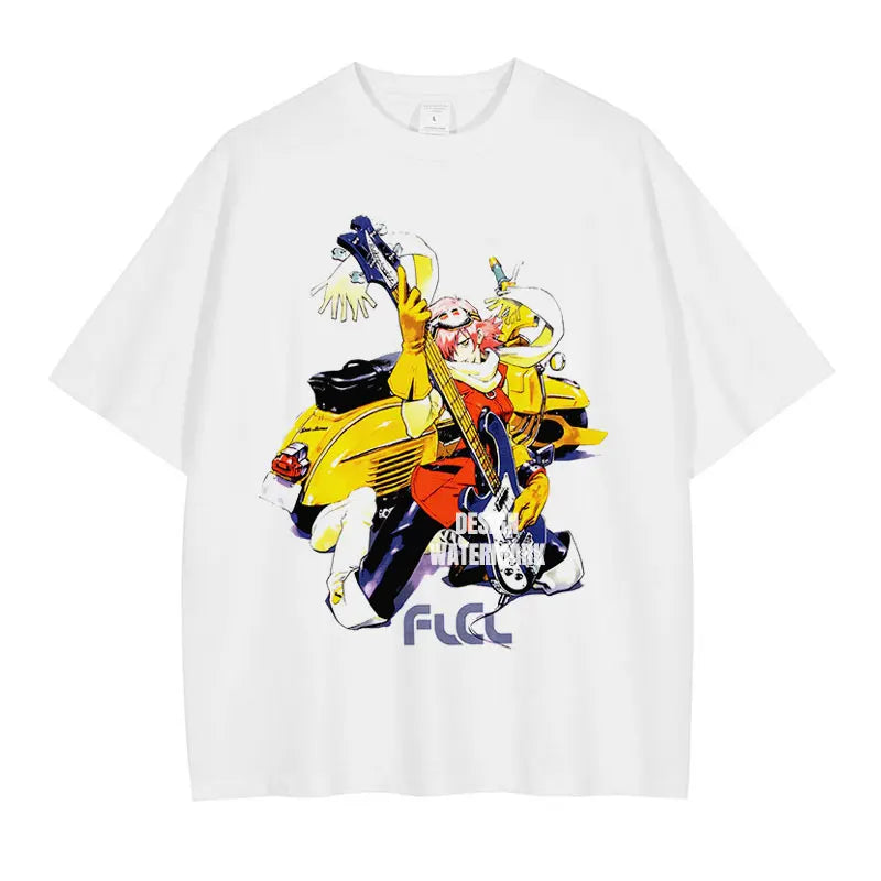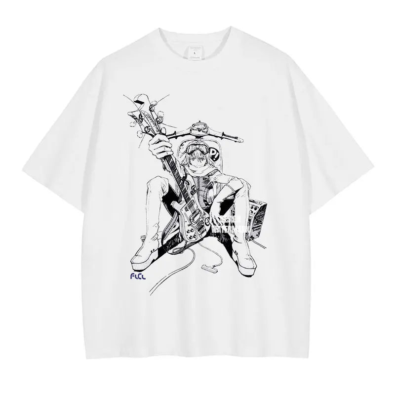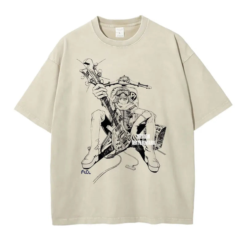 Anime Haruhara Haruko T-shirt Oversized Vintage Washed FLCL T Shirts Retro T Shirt Harajuku Manga Tops Tees Man 100% Cotton