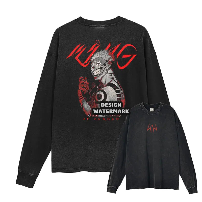 Anime J-Jujutsu K-Kaisen Sweater Gojou Satoru Long Sleeve T Shirts Sukuna Sweatshirts Yuuji Fushiguro Toji Pullover 100% Cotton