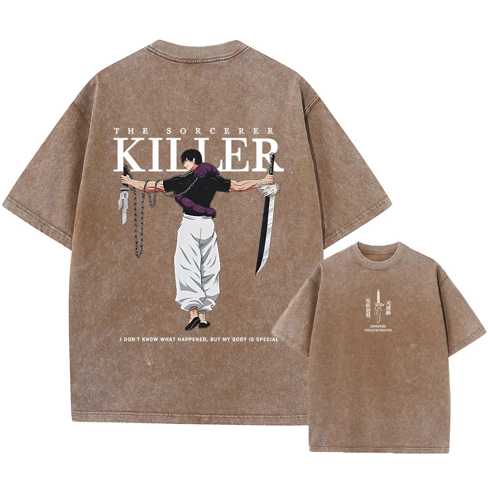 Anime Jujutsu Kaisen Fushiguro Toji Printed T Shirt Men Women Manga Tshirts Washed Cotton T-shirt Harajuku Unisex Oversized Tee