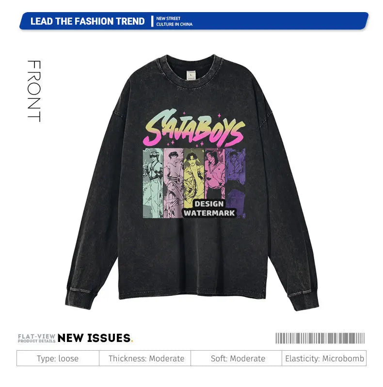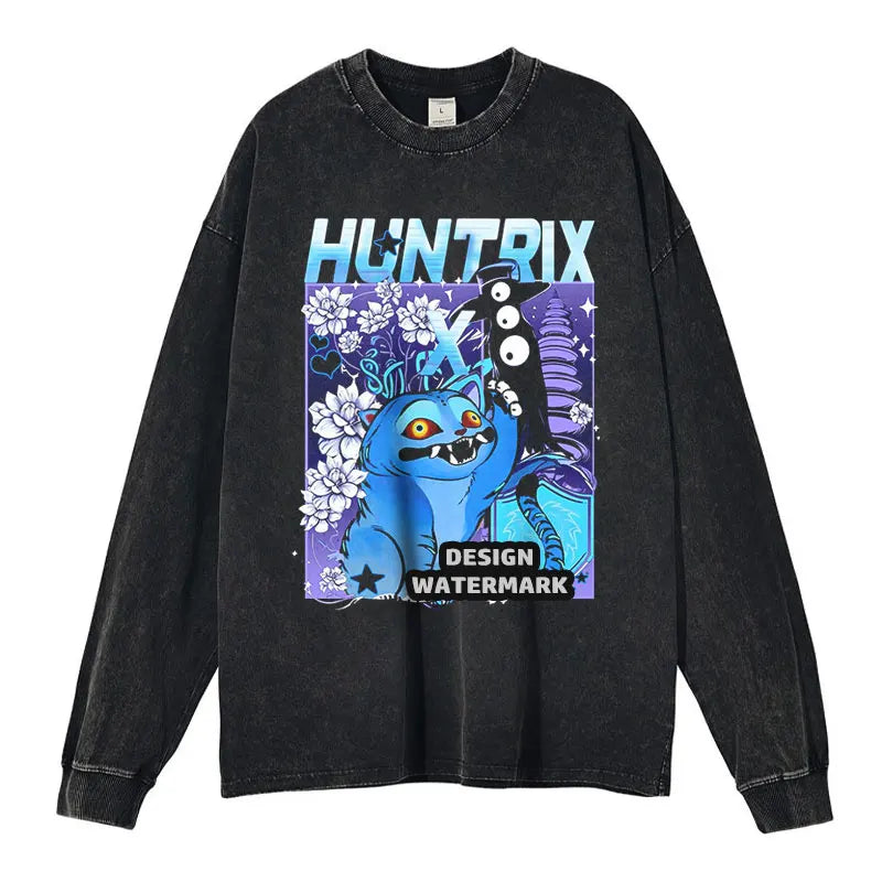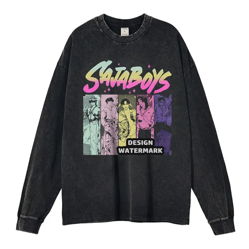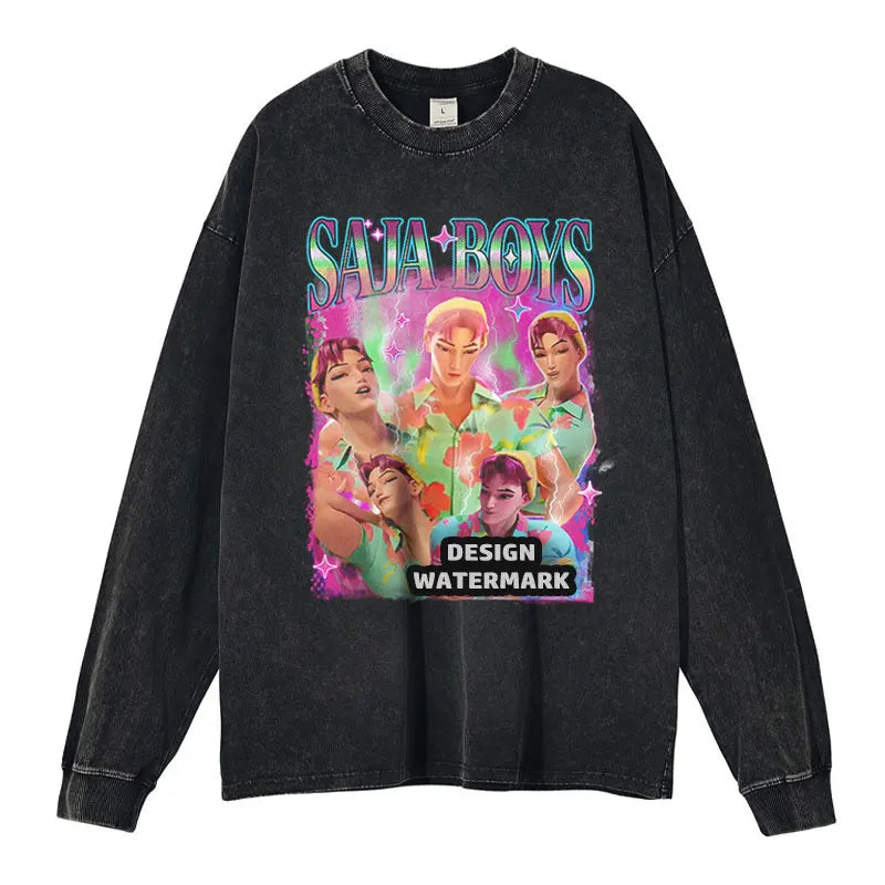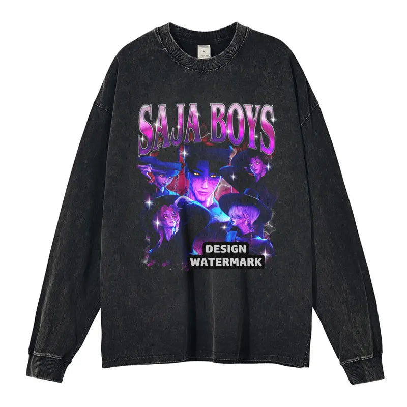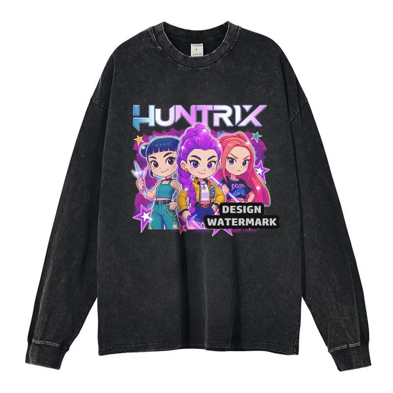 Anime Rumi Sweater Vintage Washed K-KPop D-Demon Hunters Long Sleeve T Shirts Oversized Mira Sweatshirts Tops Tees 100% Cotton