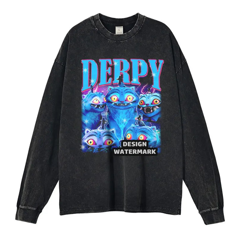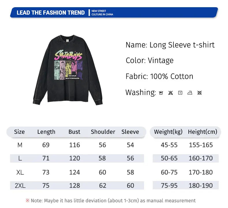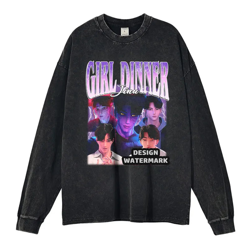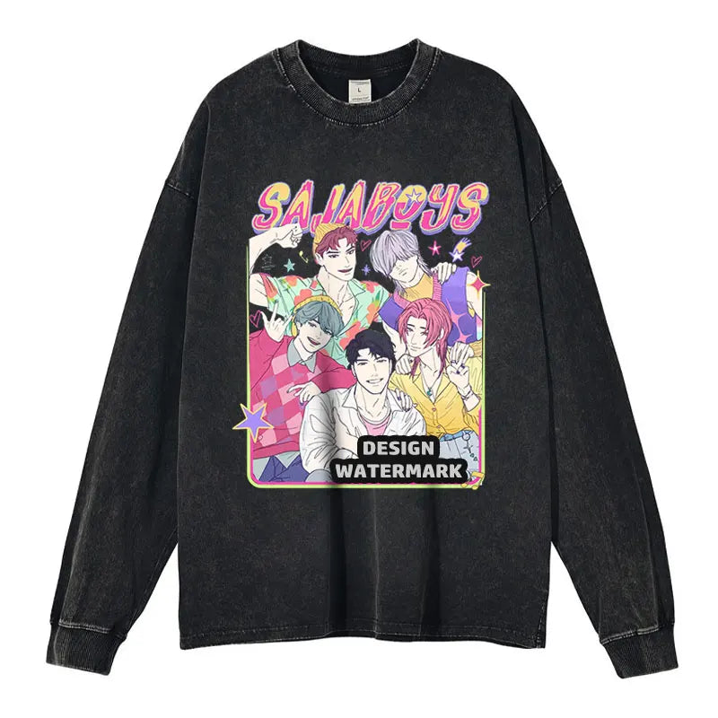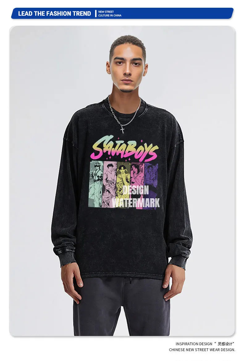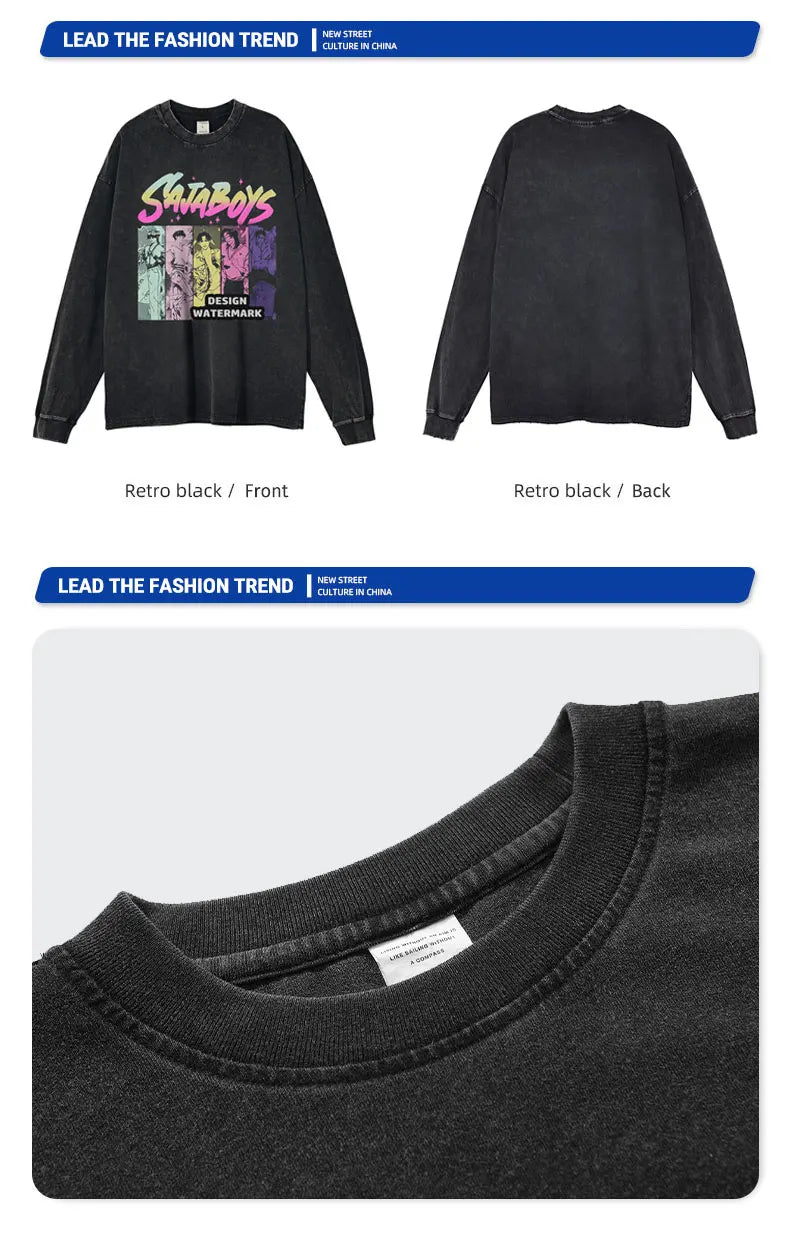 Anime Rumi Sweater Vintage Washed K-KPop D-Demon Hunters Long Sleeve T Shirts Oversized Mira Sweatshirts Tops Tees 100% Cotton