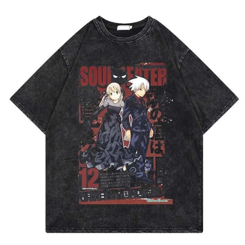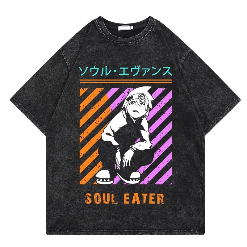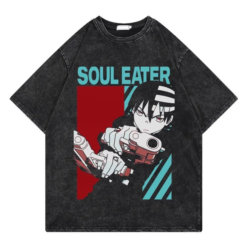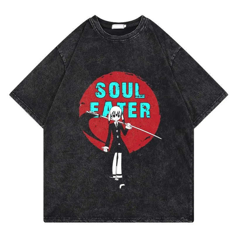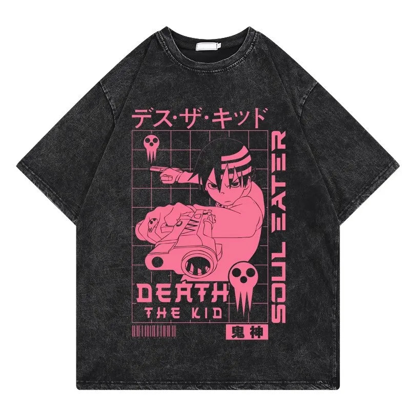 Anime Soul Eater Death the Kid Graphic Washed Tee Men Women Manga Cotton T-shirts Casual Loose T Shirt Harajuku Male Tshirt