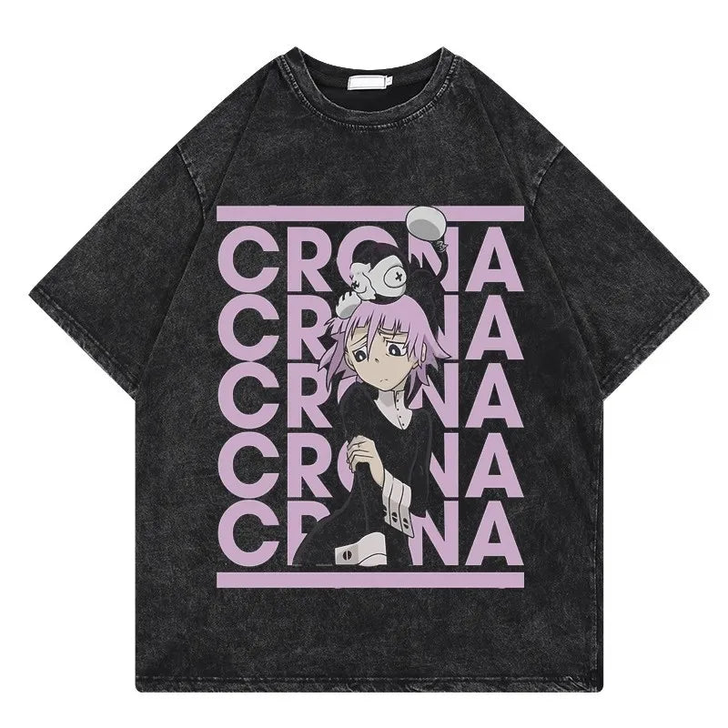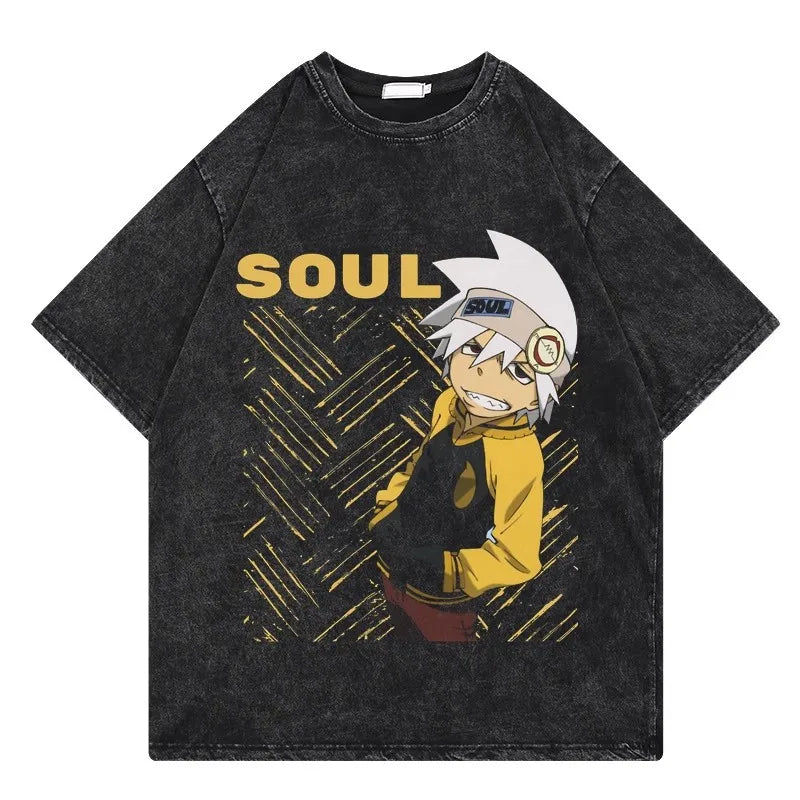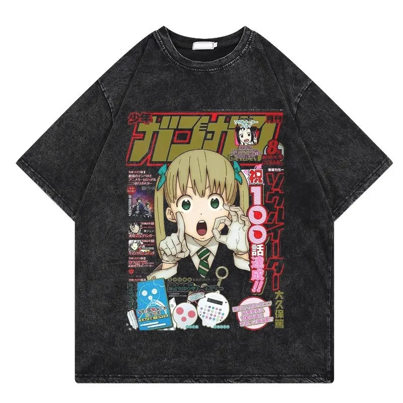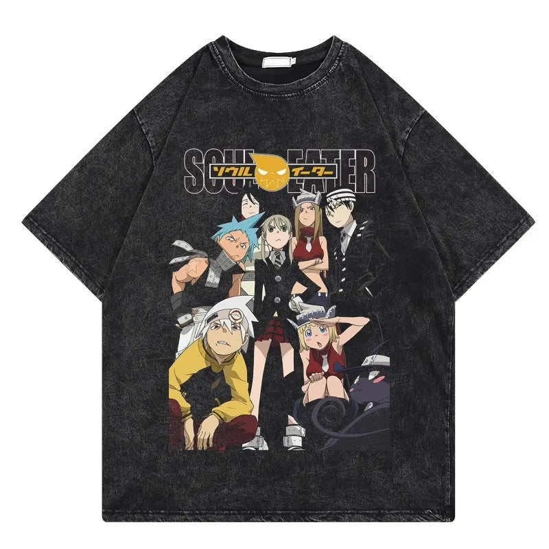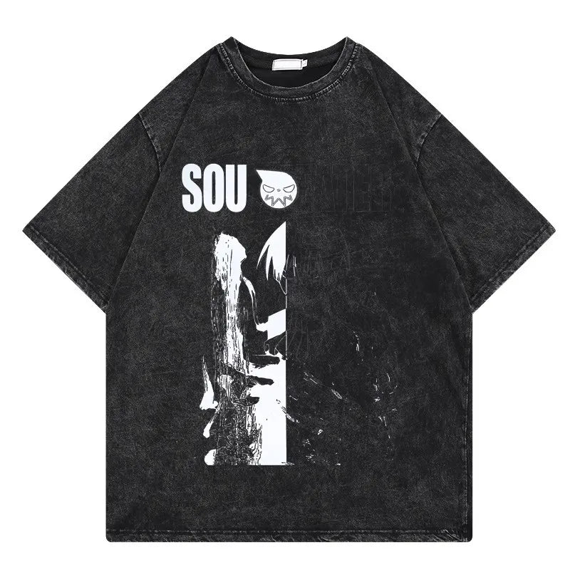 Anime Soul Eater Death the Kid Graphic Washed Tee Men Women Manga Cotton T-shirts Casual Loose T Shirt Harajuku Male Tshirt