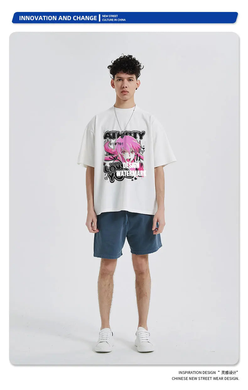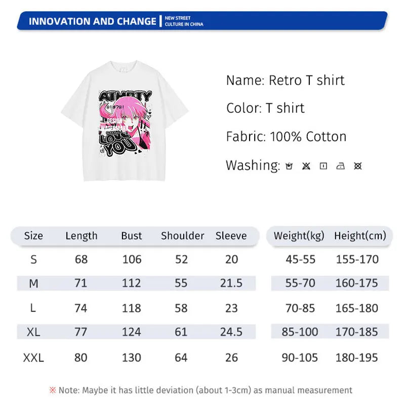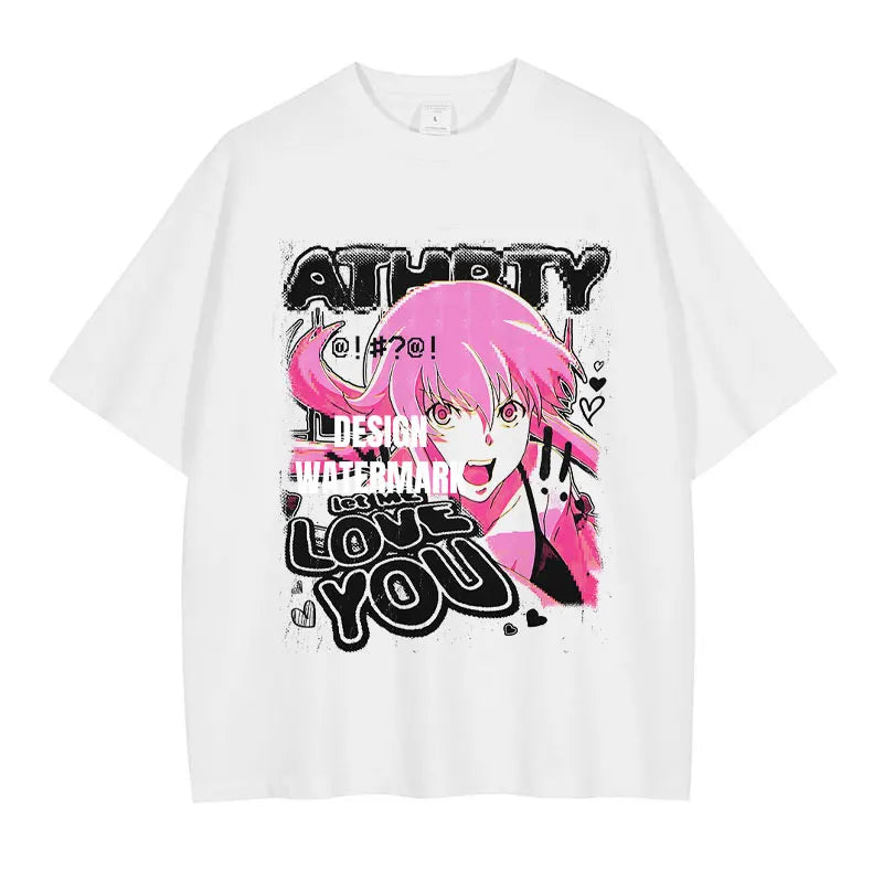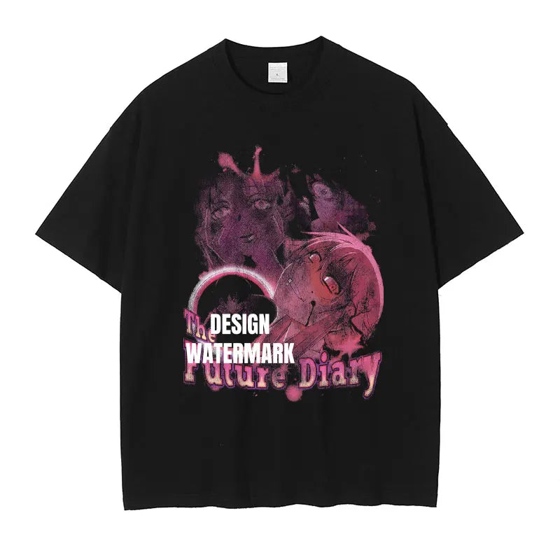 Anime The Future Diary T Shirt Oversized Vintage Washed Gasai Yuno T-shirts Manga Mirai Nikki Summer Tops Tees Man 100% Cotton