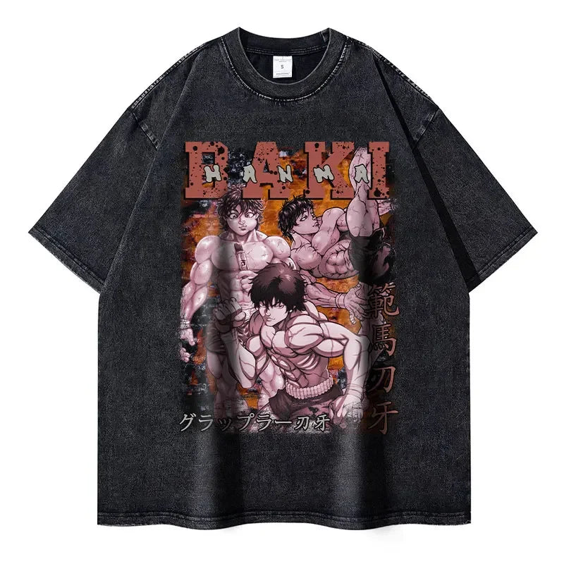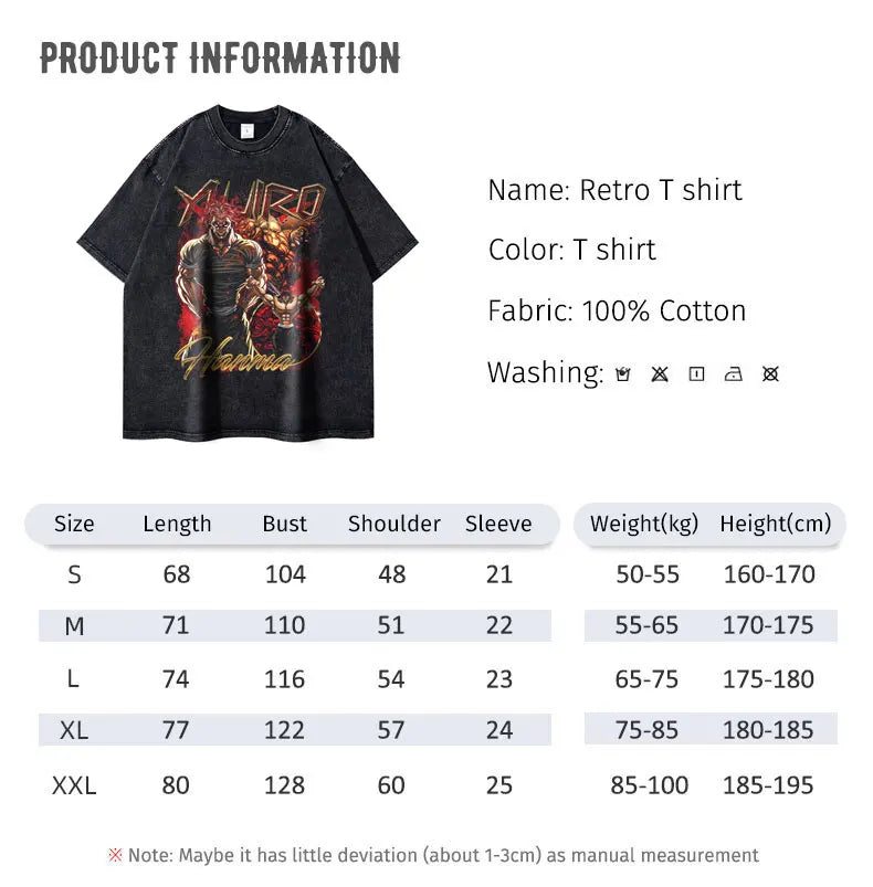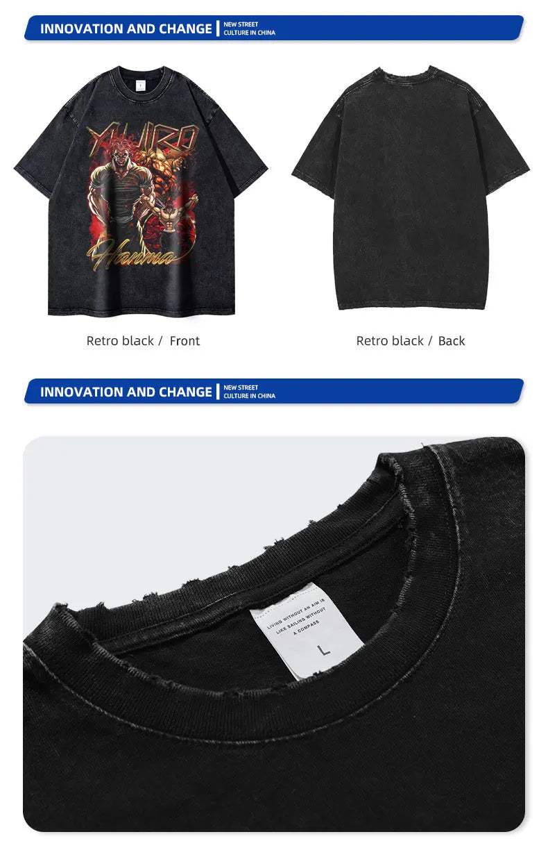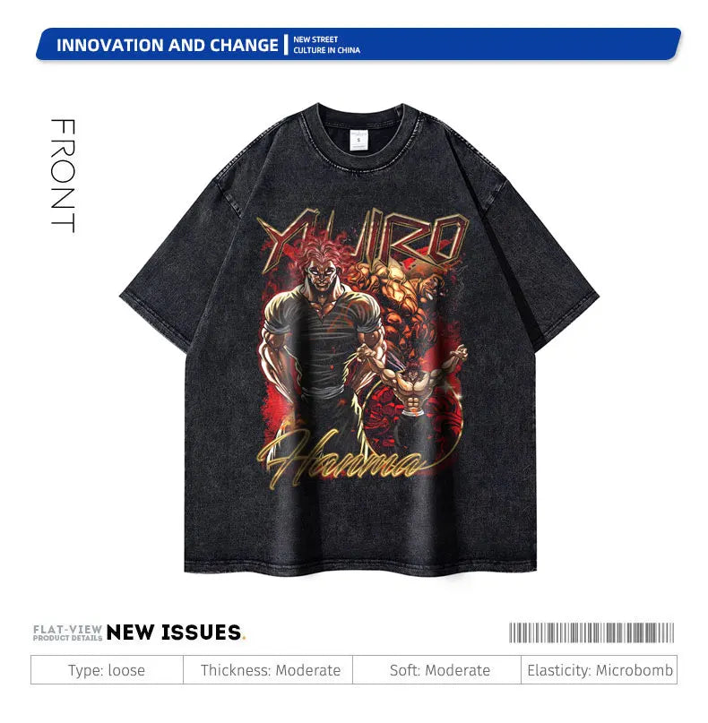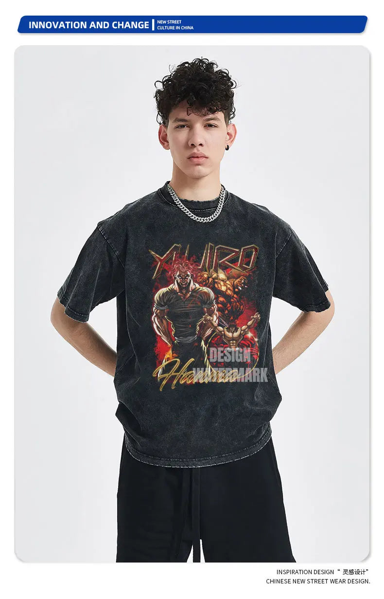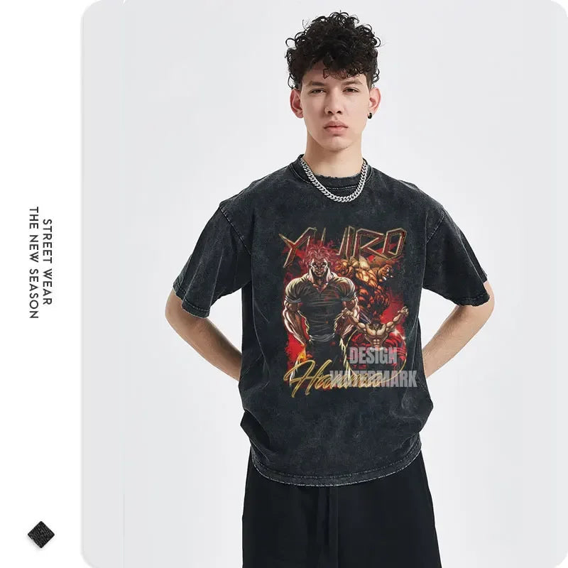 Hanma Yujiro T-shirt Harajuku Vintage Washed Anime T Shirts Streetwear Manga Ogre Oversized Tshirt Harajuku Retro Tops Tees Men