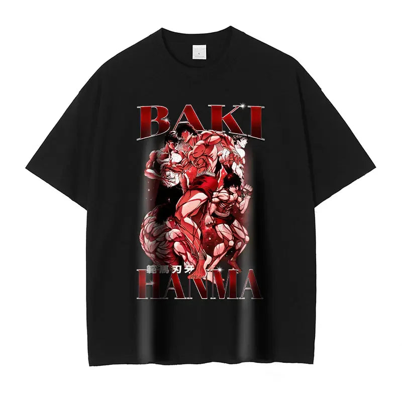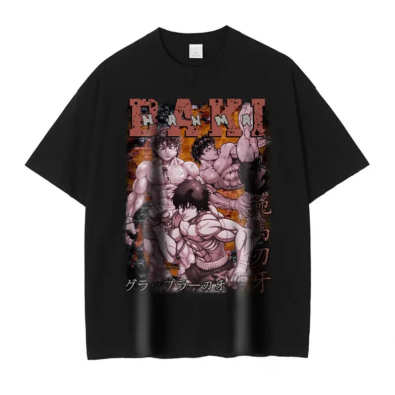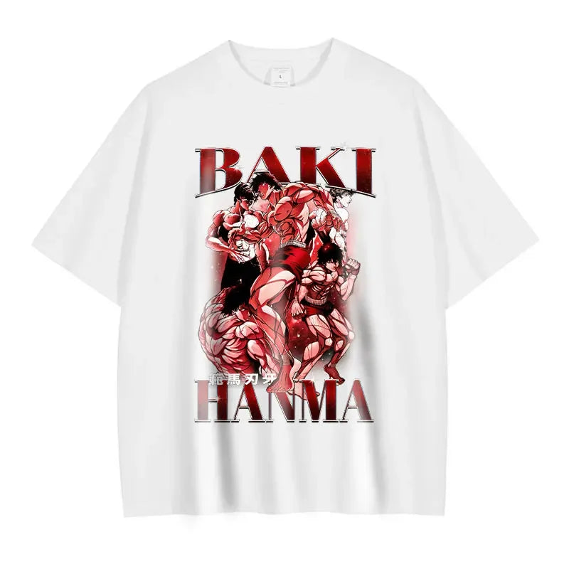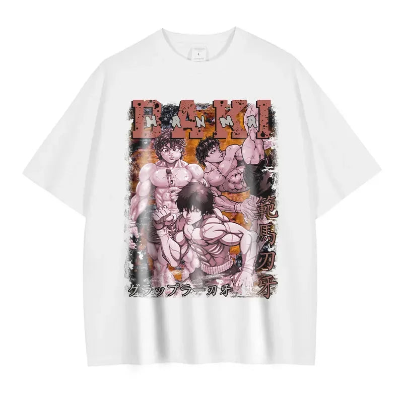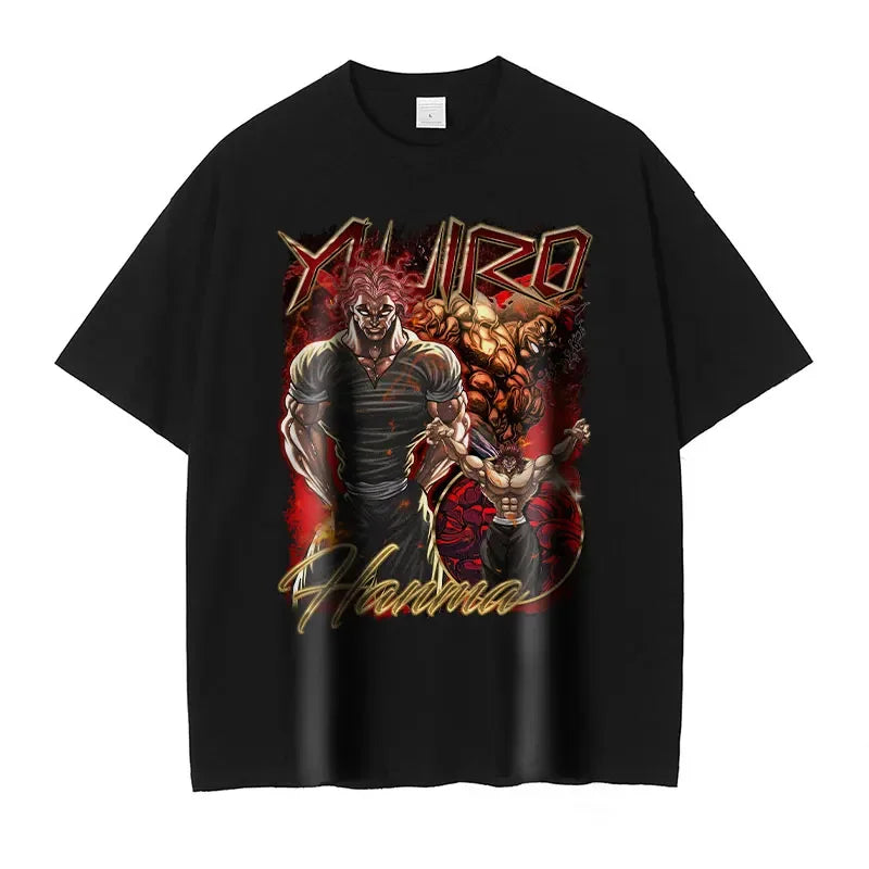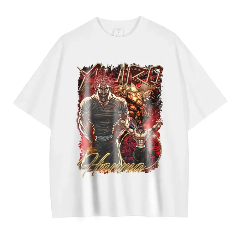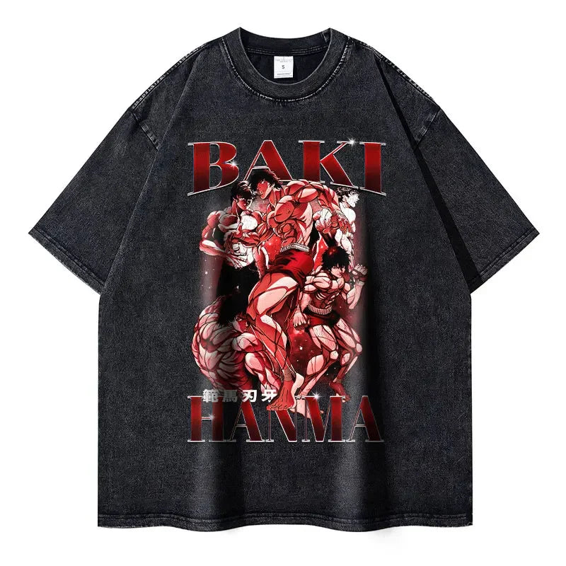 Hanma Yujiro T-shirt Harajuku Vintage Washed Anime T Shirts Streetwear Manga Ogre Oversized Tshirt Harajuku Retro Tops Tees Men