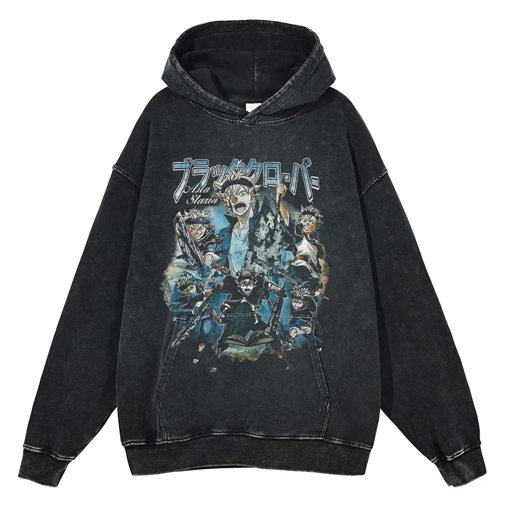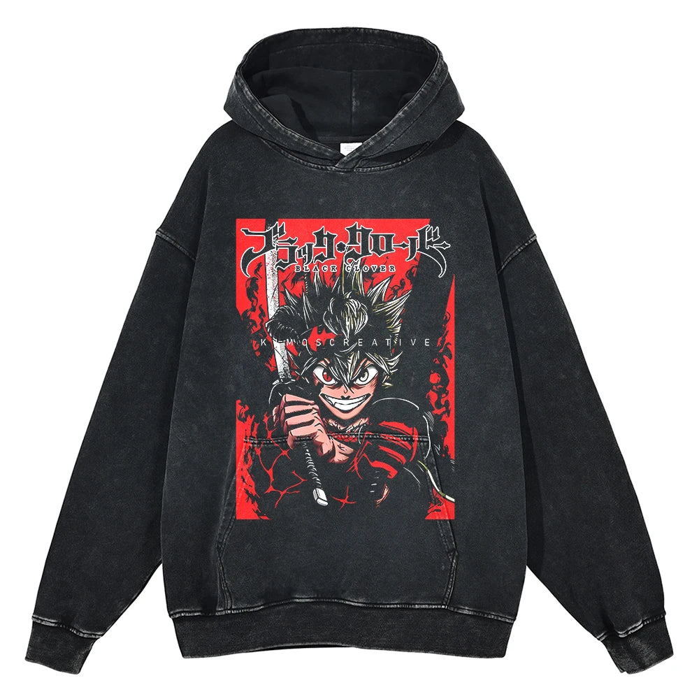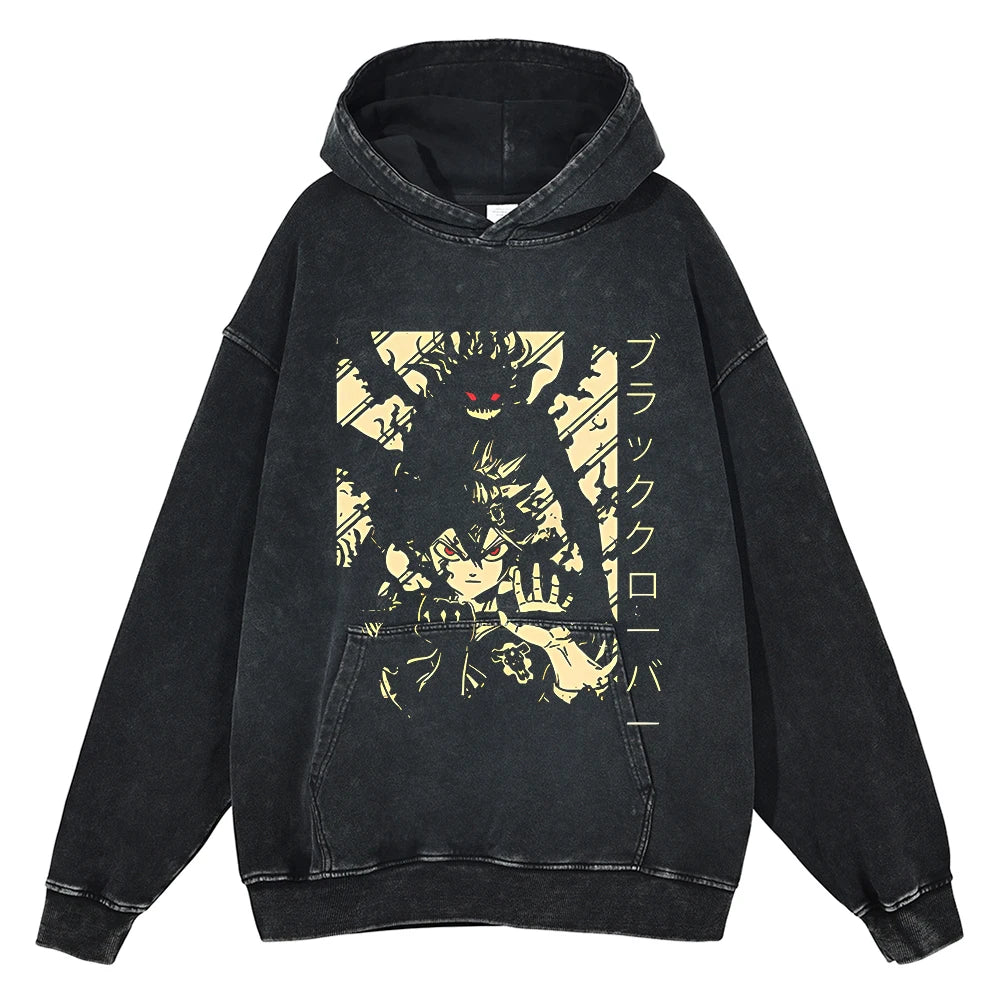 Hot Anime Black Clover Asta Graphic Hooded Men Manga Vintage Hoodies Casual Oversized Streetwear Harajuku Male Cotton Sweatshirt