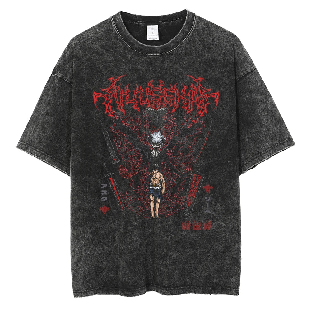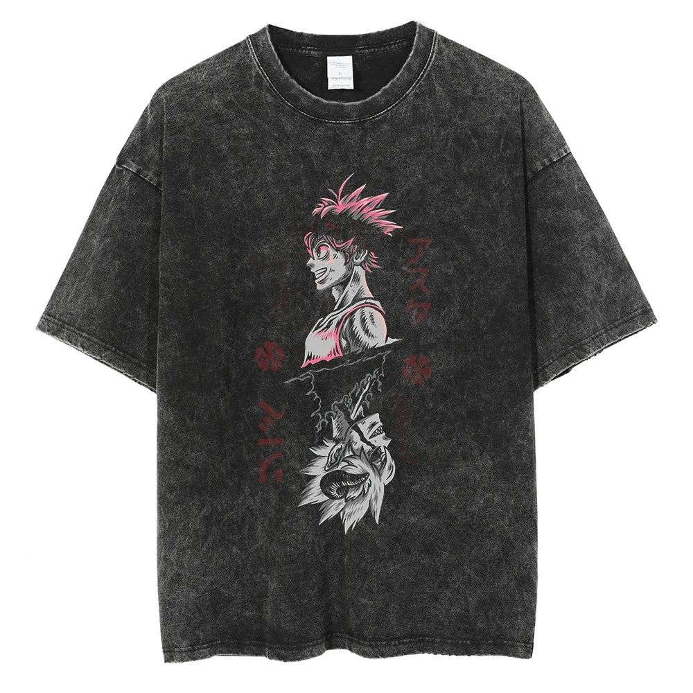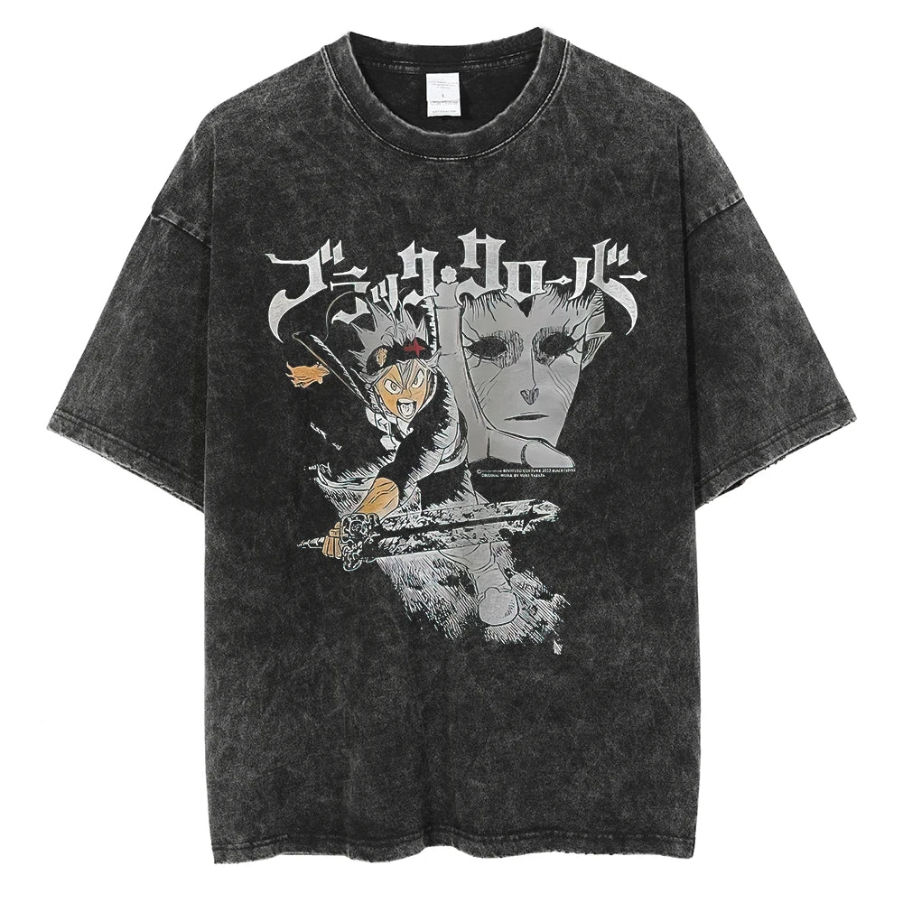 Hot Anime Black Clover Asta Logo Graphic Washed T Shirt Men Vintage Cotton Tshirts Manga Oversized Streetwear Harajuku Male Tops