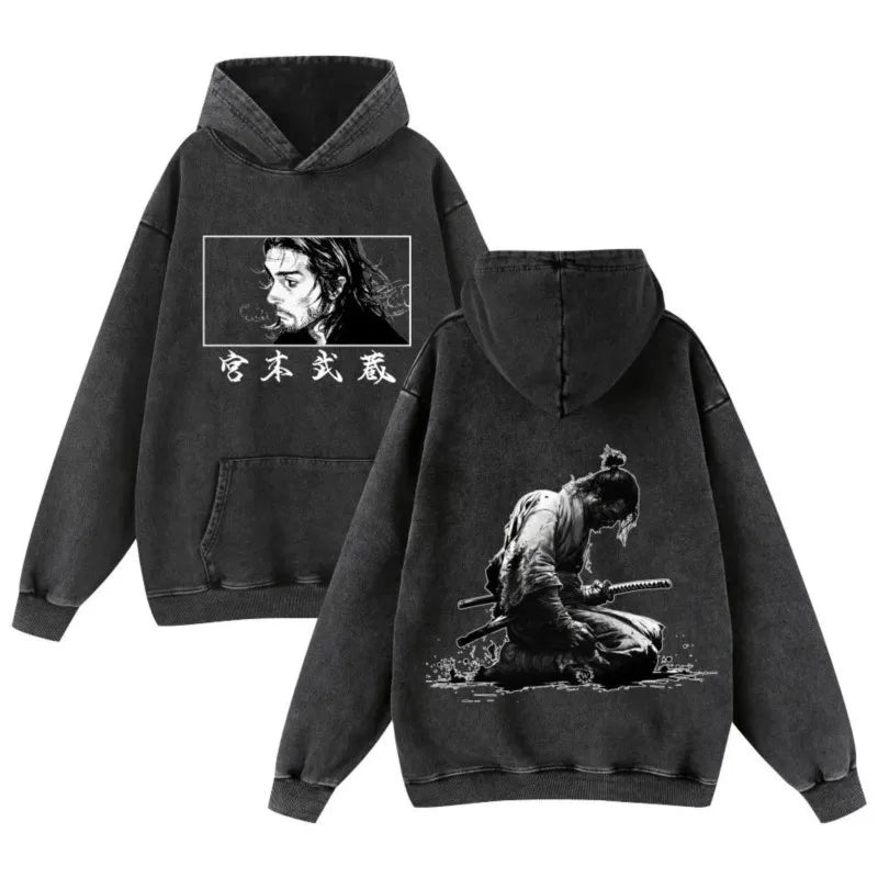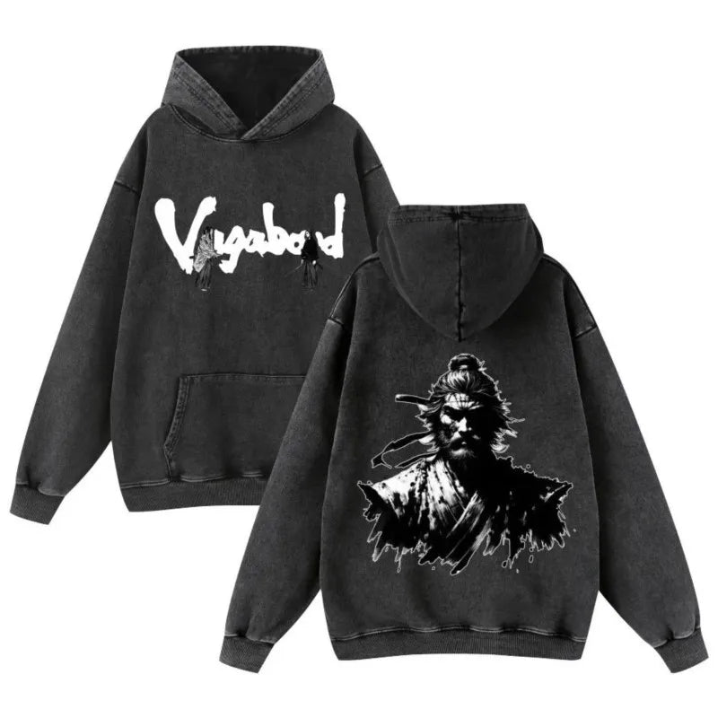 Japan Anime Vagabond Musashi Miyamoto Printed Hooded Men Manga Cotton Hoodies Casual Vintage Streetwear Harajuku Male Sweatshirt