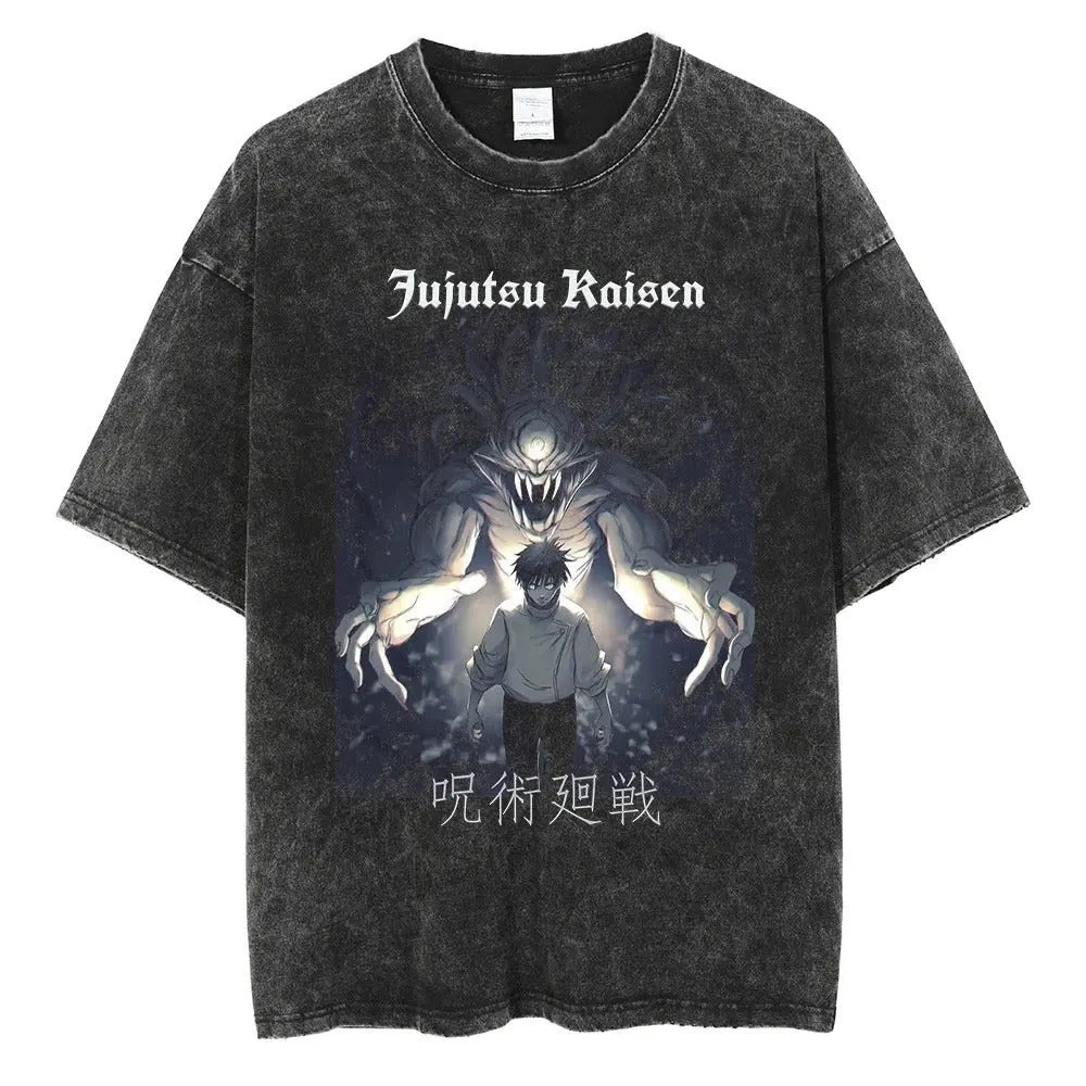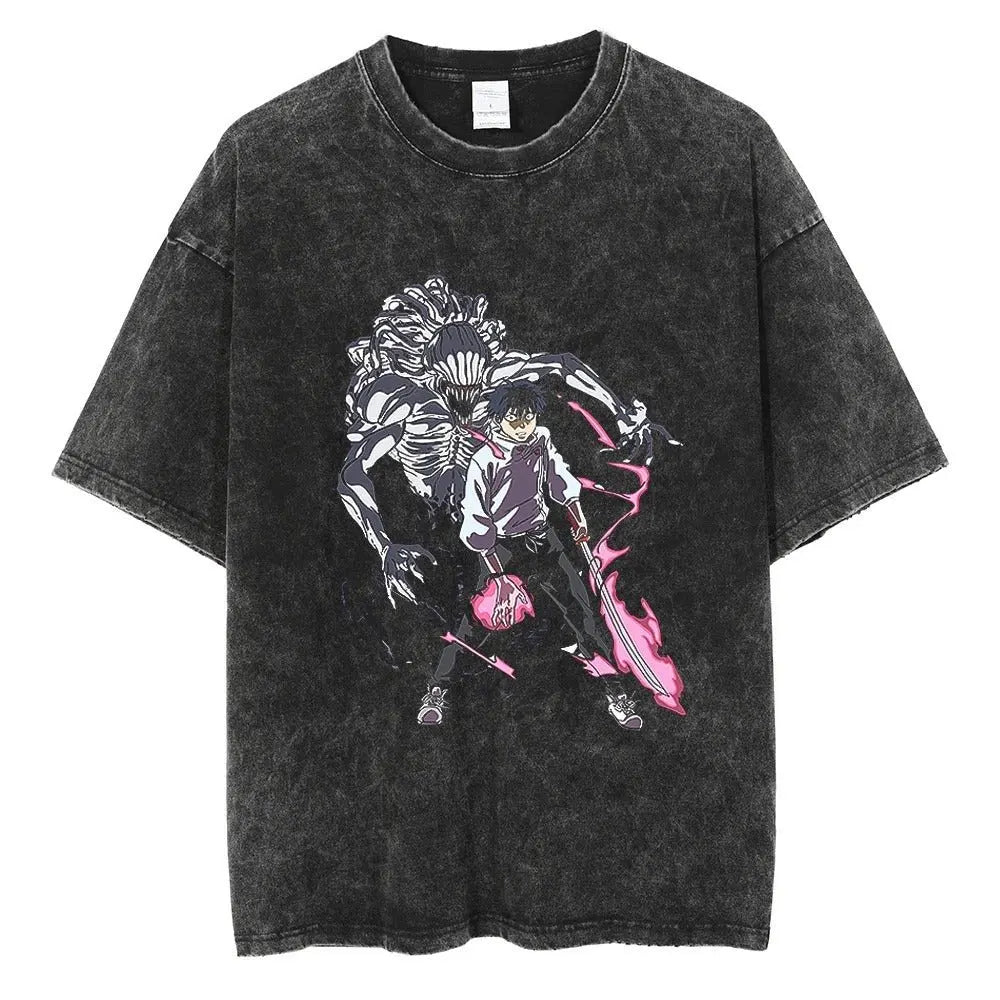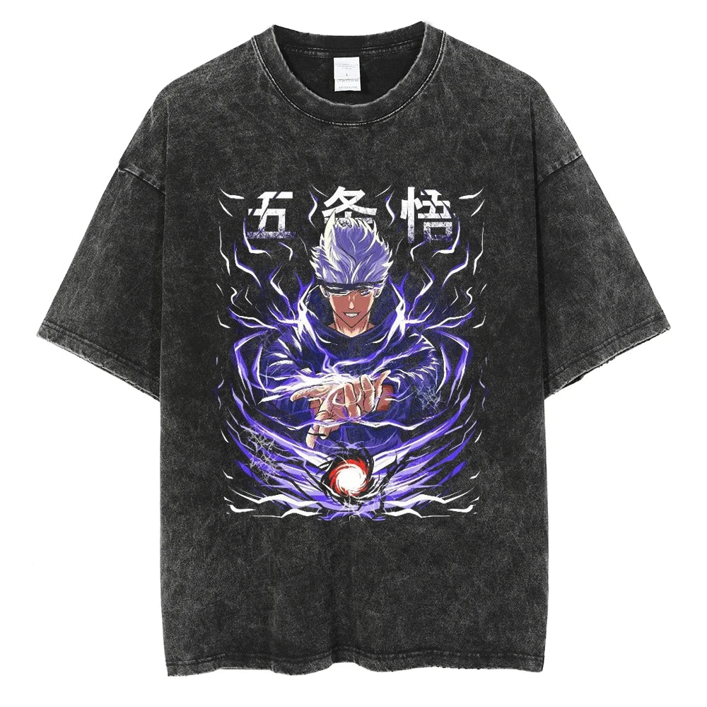 Jujutsu Kaisen Anime T Shirt Satoru Gojo And Ryomen Sukuna Printed Tee Men Women Washed Cotton Tshirts Harajuku Vintage T-shirt