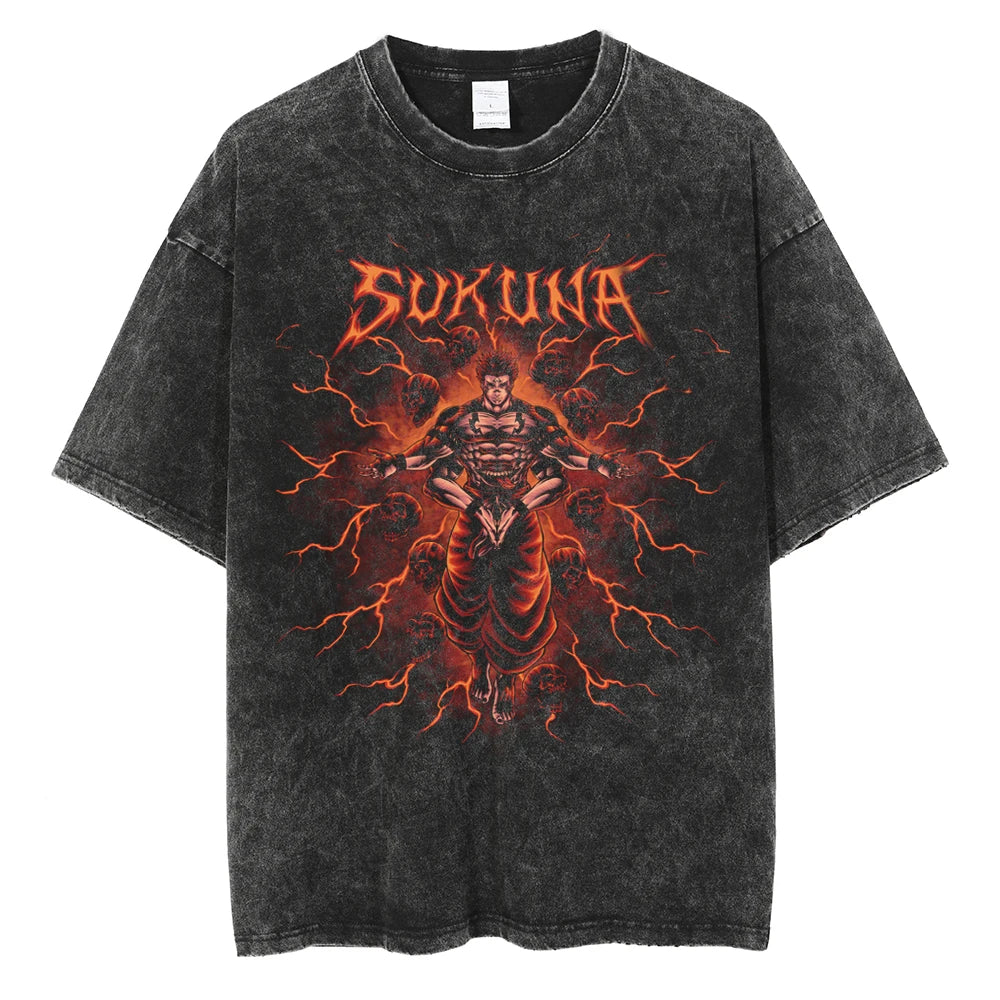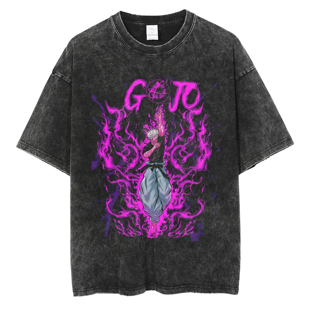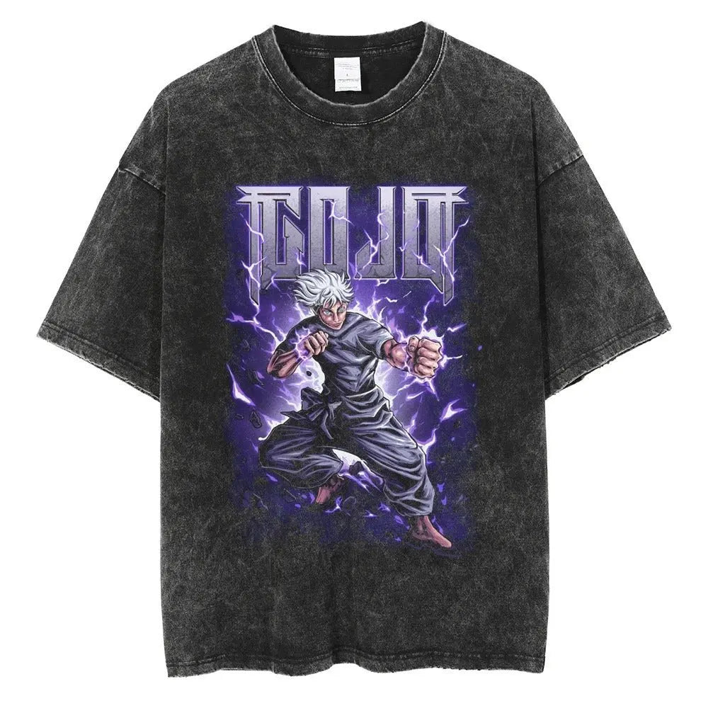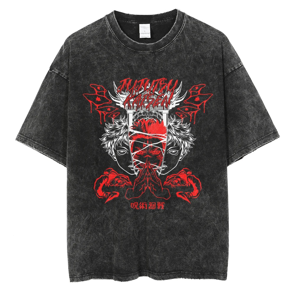 Jujutsu Kaisen Anime T Shirt Satoru Gojo And Ryomen Sukuna Printed Tee Men Women Washed Cotton Tshirts Harajuku Vintage T-shirt