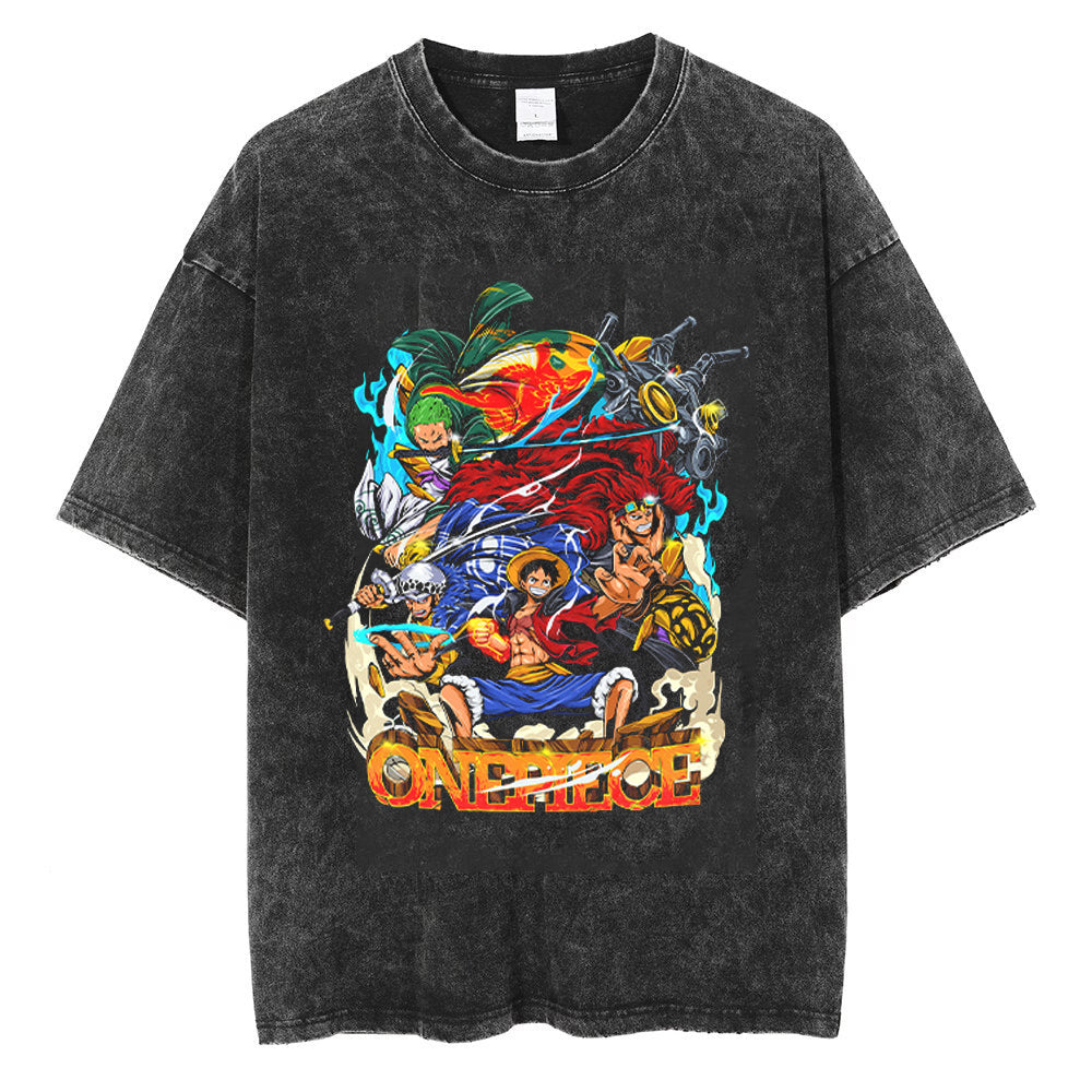 Men Washed Vintage T-Shirt Hip Hop Streetwear Anime One Piece Print T Shirt Harajuku Cotton Tshirt Men Summer Short Sleeve Tees